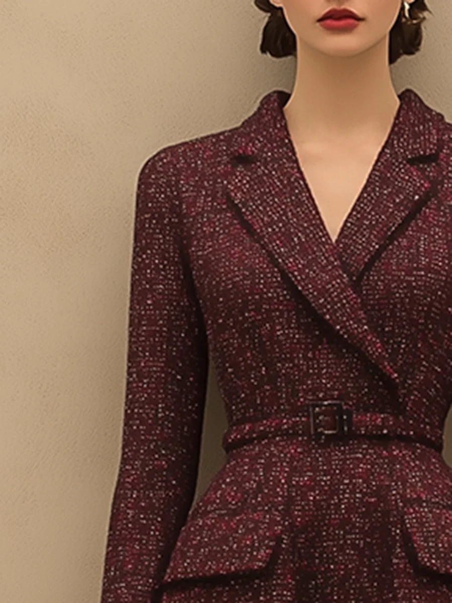 【24-hour shipping out】Vintage Elegant Ankola Red Tweed Lapel Dress